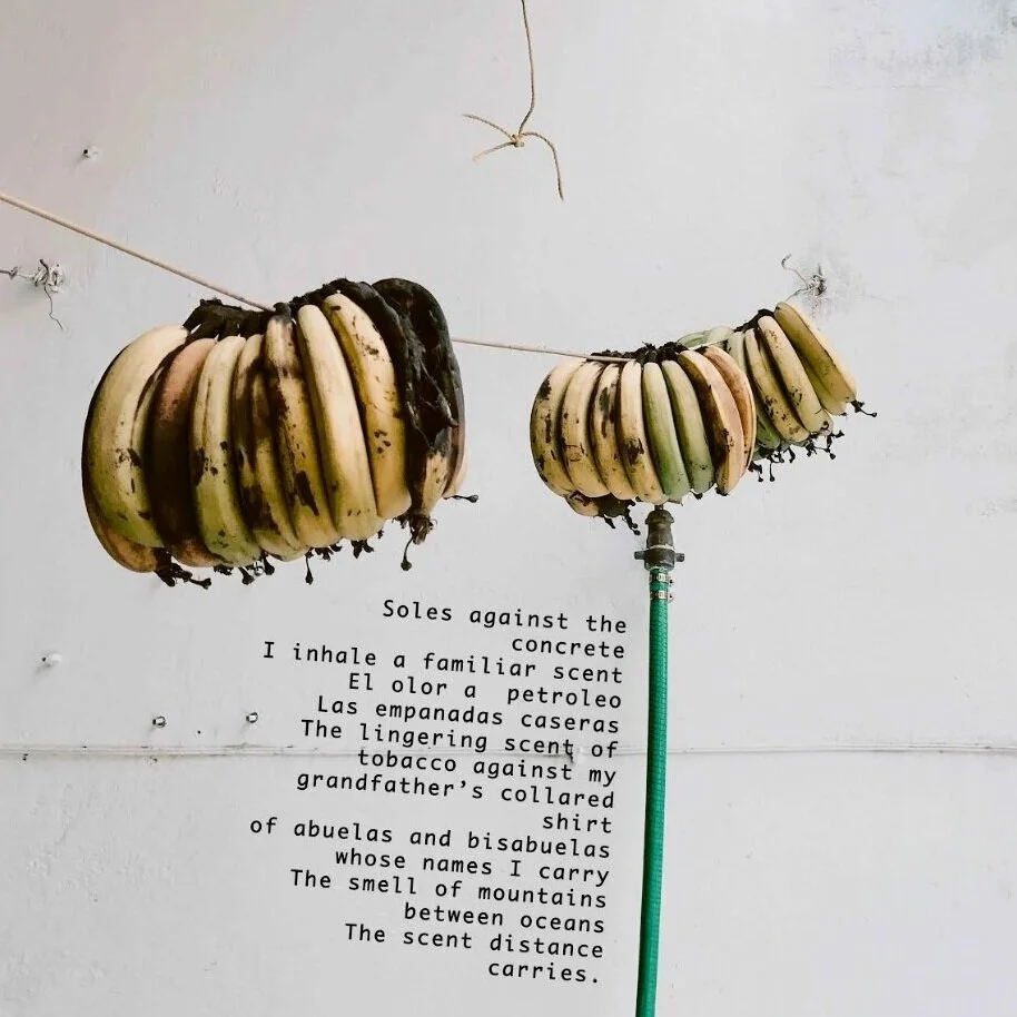 Paola de la Calle is a Colombian-American interdisciplinary artist whose work examines home, borders, identity, and nostalgia. Her practice is a multidisciplinary exploration that ties together her family’s migration, personal memories, as well as historical and political narratives through the use of digitally printed textiles, relief printmaking, and collage. In her work De la Calle explores how borders manifest themselves as political monuments derived from a legacy of colonialism by addressing subjects such as food justice, immigration, and resistance. Her practice often manifests itself in the exploration of maps and everyday objects she defines as cultural artifacts. Through this investigation, De la Calle tackles assumptions about migration and displacement by combining quotidian imagery and Spanglish poetry to present ideas about cultural elasticity.
