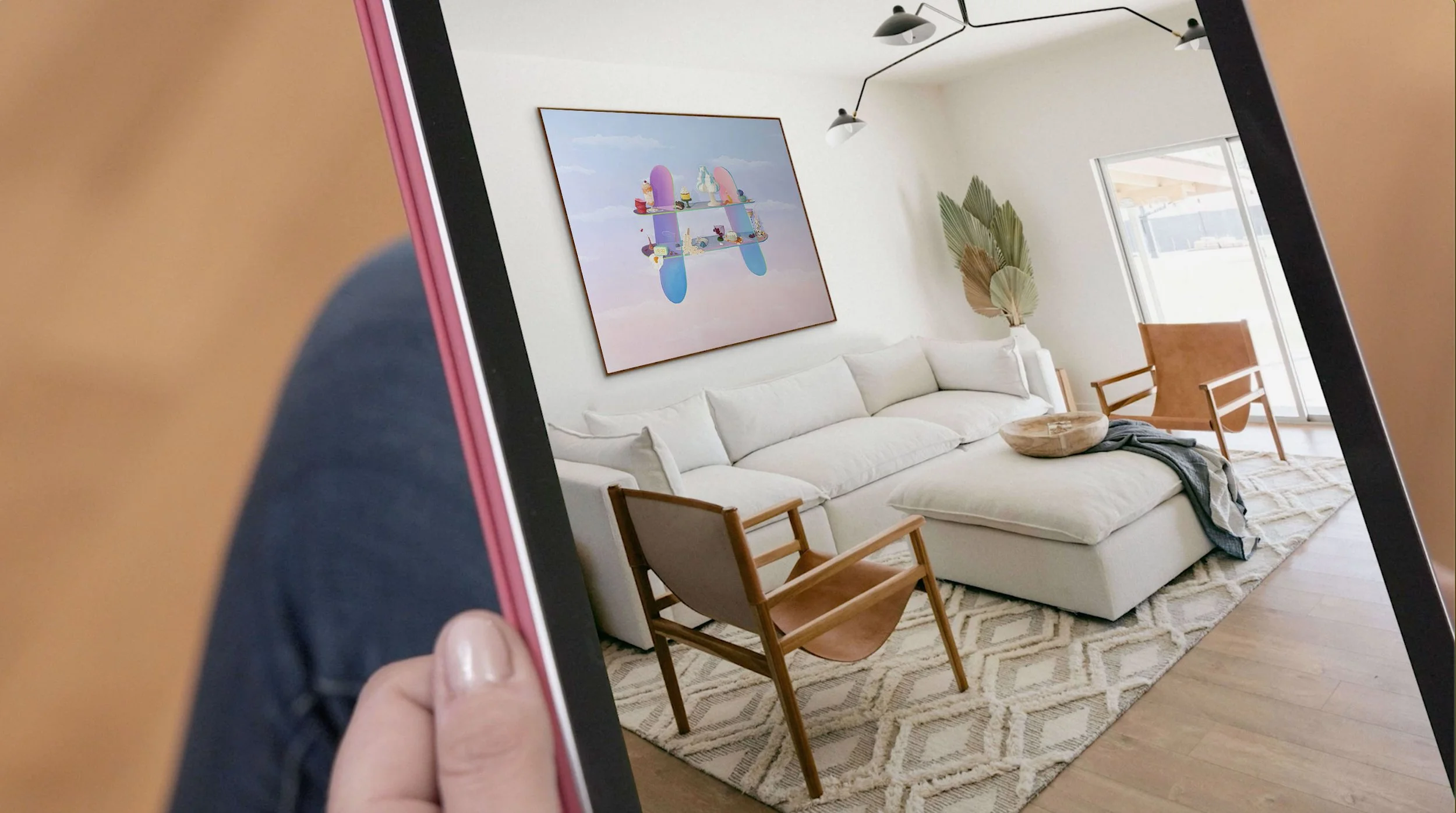 After viewing and selecting art that you love and by tapping on the “View in AR” button you’ll be able to access the free ArtPlacer AR Mobile app and visualize the artwork on your wall through your device’s camera. Collectors can see a to-scale version of the art appear on their wall, providing a realistic preview of how that piece works in their space. They can also capture and share this AR view with friends or family for feedback.