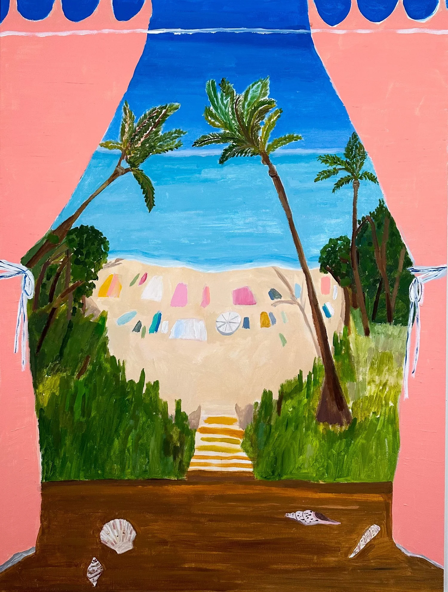Polly Shindler, Cabana View, 2023, Acrylic on canvas, 40 x 30 in (101.6 x 76.2 cm). Courtesy of Deanna Evans Projects.